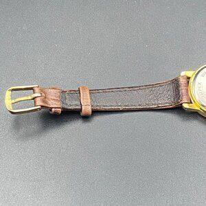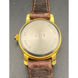 Quartex Delta Impex Womens Watch Gold Tone Case Brown Leather Band New Battery