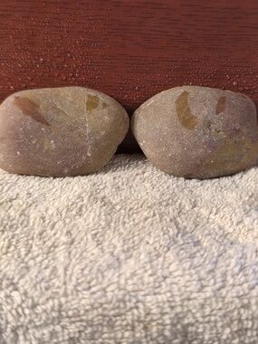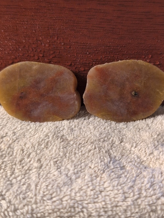Quartz Nodule. This was one piece that has been cut into two. This is rough-cut and unpolished. There are saw marks. This is pictured wet and dry. These look best when wet, clear coated, or polished approx 2.5" X 2".