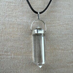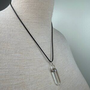 Quartz Pendant Necklace New Black Cord - lobster clasp - 20 - 22.5" 2" X .75" Good condition RR424-JB30-104