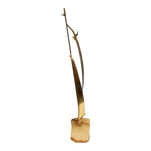 Quartz Sailboat Sculpture by Jere Demott Mid Century Brass 1960’s Solid hand, welded cut, brass mounted on quartz rock