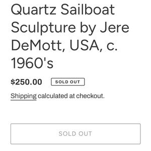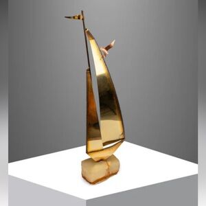 Quartz Sailboat Sculpture by Jere Demott Mid Century Brass 1960’s Signed