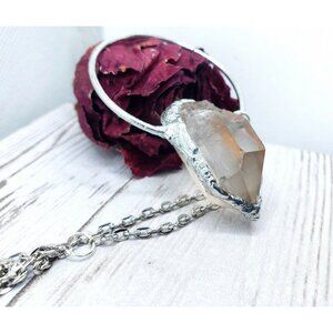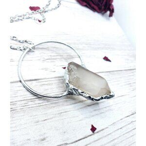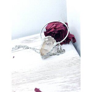 A unique and amazing raw Quartz crystal crafted into a beautiful renaissance / medieval pendant, hung from an 18" stainless steel chain.