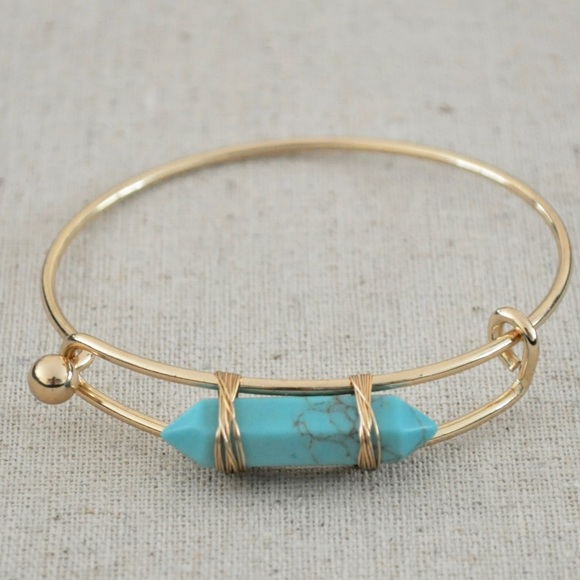 Quartz Stone Bangle. Turquoise. Gold. Will fit a wrist up to 6.5" - 7" diamter.