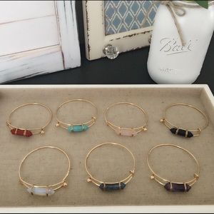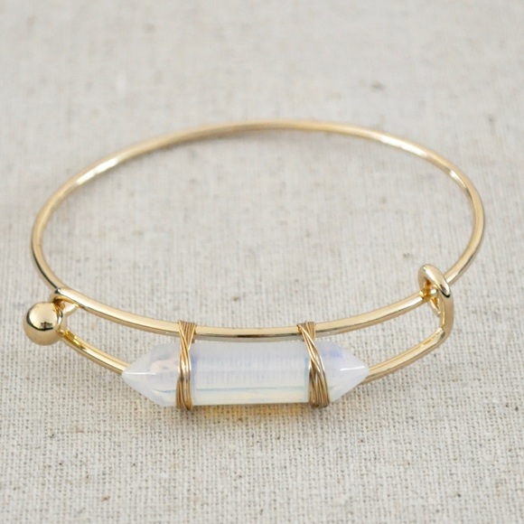 Quartz Stone Bangle. White. Gold. Will fit a wrist up to 6.5" - 7" diamter.