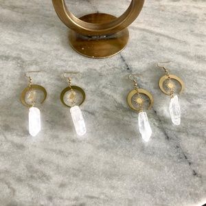 New with tags Quartz Stone Crescent Moon and Sun Drop Gold Earrings