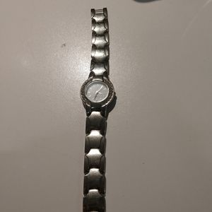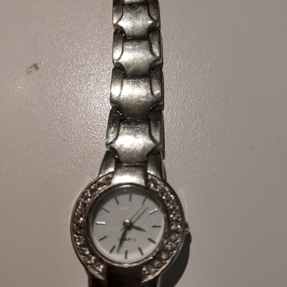 Ladies Quartz Watch... Silver-tone, crystals around face, working condition