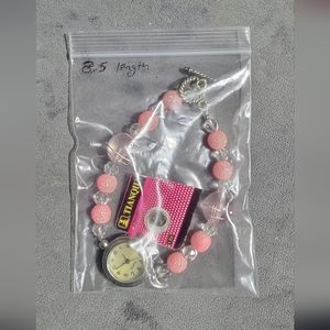 8.5in Length Pink multi tone Silver twist toggle clasp