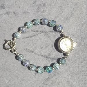 8in Length blue multi tone Silver twist toggle clasp