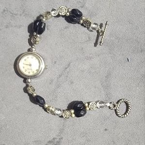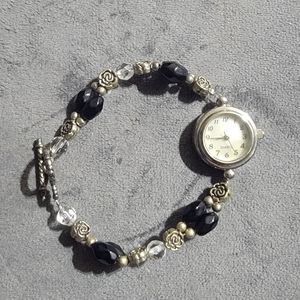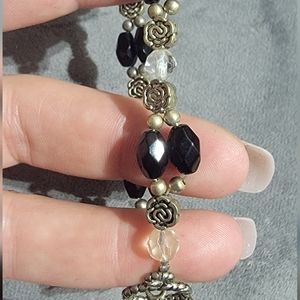 8in Length Black ,Clear & silver flowers Silver twist toggle clasp