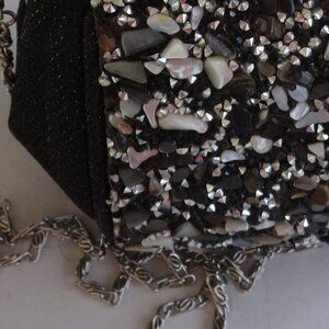 Quartz chips bling, cross body black clutch bag with push clasp closure, lined