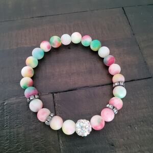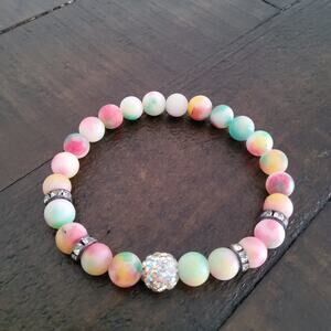 Fashion multicolor pastel rhinestone beaded sparkle quartzite stretch bracelet.