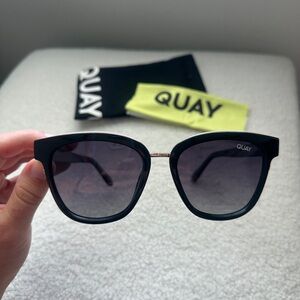 New and never worn. Stylish Quay sunglasses with black frames. Features polarized lenses for clear vision.