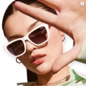 Quay Australia Call The Shots White Frame Polarized Grey Lens Cat Eye Sunglasses
