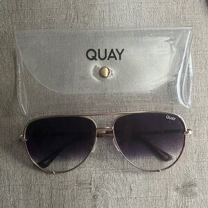 Slight wear and good used condition. Stylish aviator sunglasses by Quay Australia. Features gold frames with black lenses. Ideal for a modern look.