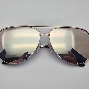 This listing is for authentic Quay Australia High Key Gold Frame Gold/Rose Gold Mirror Lens Oversized Aviator Sunglasses 63-15-140. Sunglasses are in fair pre-owned condition, both lenses have some light scratches (see photos). Listed price is reflective of item condition. Size: 63-15-140. Made in China. Please see pictures to make your complete condition assessment.