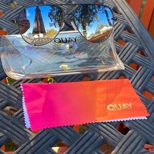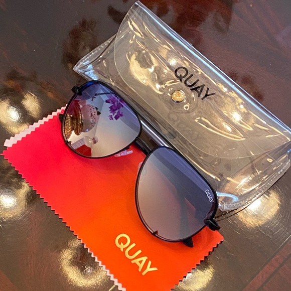 BRAND NEW NEVER WORN Quay Australia High Key Mini Aviator sunglasses with a sleek black frame. Features reflective outer mirror lenses and polarized inner lenses. Ideal for a modern look. Discontinued High Key color in the mini size.