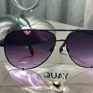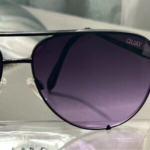 Stylish aviator sunglasses. Gradient purple lenses. Sleek black frame. Perfect for any occasion.