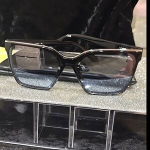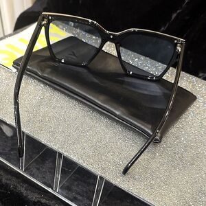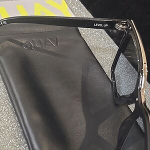 Stylish Quay sunglasses with a black frame and blue lenses. Perfect for a chic look.