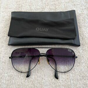 Quay High Key Aviator Sunglasses in Black Fade With Soft Case