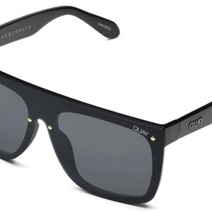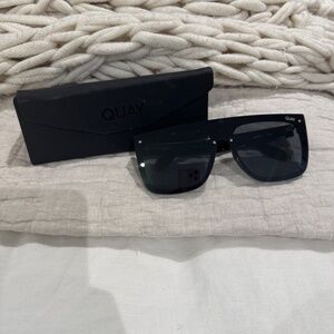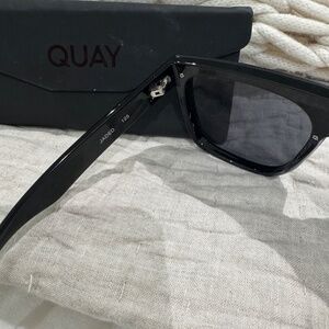 Quay "Jaded" sunglasses in black with gold studs. In good condition- comes with hard case- has minimal wear scratches on lenses.