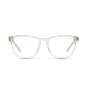 * Featuring a classic square shape, premium injection frames, and blue light lenses. Medium fit. Clear / Blush.