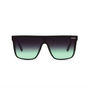 Quay Nightfall Black on Black green mint Fade Square Unisex Sunglasses brand new