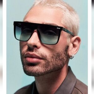 Quay Nightfall Black on Black Fade Mint Square Unisex Sunglasses brand new with soft black canvas pouch
