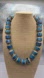 Quazi ethnic tribal blue large rolled paper bead necklace.