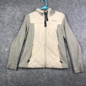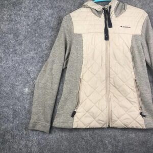 Quechua Hooded Full Zip Fleece Women's Size Medium Tan Beige Outdoor