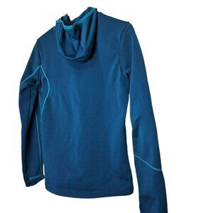 Quechua Oxylane Womens XS Blue Hooded Fleece Jacket With Front Zip Chest Pocket