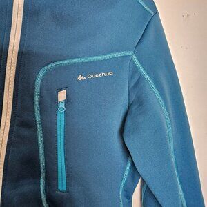 In the midst of chilly adventures, this Quechua fleece jacket becomes a steadfast companion. The cozy material envelopes you, while the thoughtful design, featuring a hood and chest pocket, ensures both warmth and utility. Its vibrant blue hue adds a splash of color to the wintry landscape.