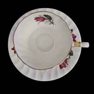 Queen Anne Bone China England Rose Teacup & Saucer Set Gold Trim