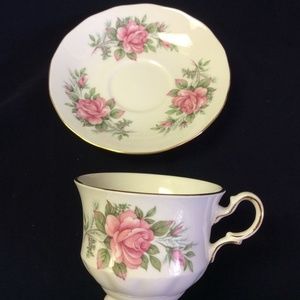 Queen Anne Bone China England Tea Cup & Saucer Pink floral Ridgway #8540