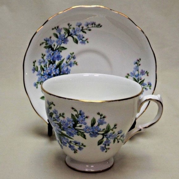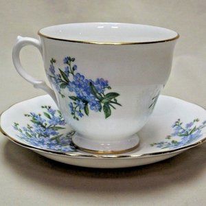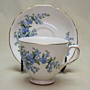 Queen Anne Bone China Forget-Me-Not Footed Tea Cup and Saucer Pattern no. 7527