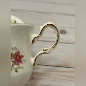 Queen Anne Princess Roses Teacup and Saucer set is a vintage piece made in England with a floral design.