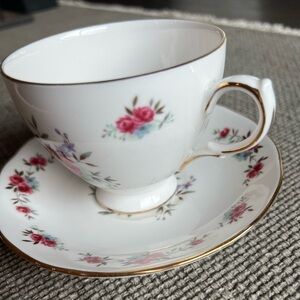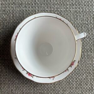 Queen Anne bone china floral pattern, pink mini roses, gold rims,vintage,England