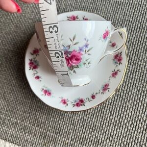 Queen Anne bone china floral pattern, pink mini roses flowers pattern, gold rims, vintage, made in England