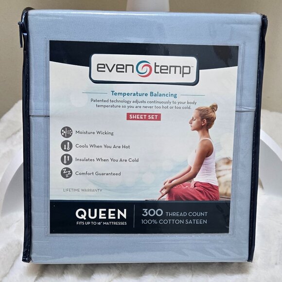Queen Bed Sheet Set Even Temp 300 Thread Count Sky Blue (NWT) Still in Package
