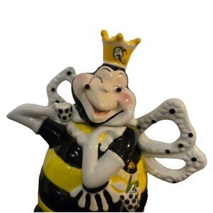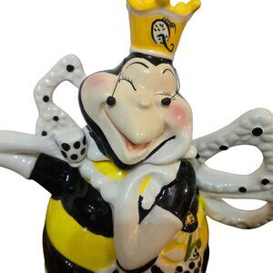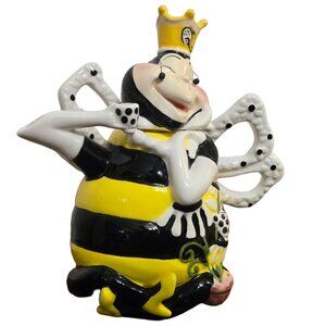 Quirky and colorful Queen Bee teapot by Heather Goldminc. Hand-painted, suitable for decorative use. Not microwave or dishwasher safe.