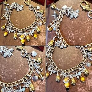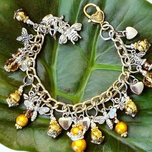 Queen Bee bracelet featuring honeybees and crowns on a fun chain. Gorgeous queen bee bracelet. Know one? Are one? For your favorite one. Know a queen bee? Are a queen bee?Or just love honey bees? We love them so much! Seeing and wearing honey bees makes us so very happy. Your queen bee in you will love this bracelet. The queen bee you love will love this gift! We show homage and bow down to the queen bees of this world with a beautiful charm bracelet inspired by them. Bees, crowns, stainless steel hearts, Swarovski crystals, Russian glass beads, miracle beads, and vintage beads. Each charm was chosen because it represents something of the queen bee in us. The charms are stainless steel, brass, bronze, gold filled, enamel, some pieces are vintage. Our favourite queen bee wears hers with pride. We hope you enjoy our love of bees and queen bees through wearing our jewelry. 🐝🧡 adjustable from 8”-8.5”