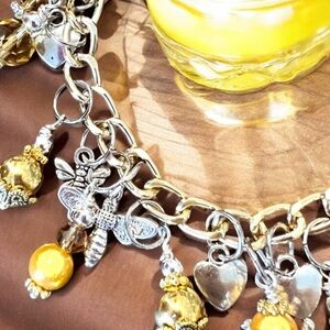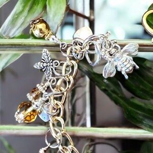 Queen Bee bracelet featuring honeybees and crowns on a fun chain. Gorgeous queen bee bracelet. Know one? Are one? For your favorite one. Know a queen bee? Are a queen bee?Or just love honey bees? We love them so much! Seeing and wearing honey bees makes us so very happy. Your queen bee in you will love this bracelet. The queen bee you love will love this gift! We show homage and bow down to the queen bees of this world with a beautiful charm bracelet inspired by them. Bees, crowns, stainless steel hearts, Swarovski crystals, Russian glass beads, miracle beads, and vintage beads. Each charm was chosen because it represents something of the queen bee in us. The charms are stainless steel, brass, bronze, gold filled, enamel, some pieces are vintage. Our favourite queen bee wears hers with pride. We hope you enjoy our love of bees and queen bees through wearing our jewelry. 🐝🧡 adjustable from 8”-8.5”