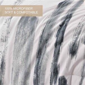 Queen Comforter Set 3pc, Art Grey White Printed Pattern Reversible Down