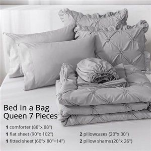 Queen Comforter Set 7 Pieces,Pintuck Gray Bed in a Bag Comforter Set for Bedroom