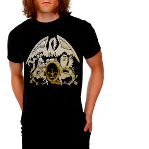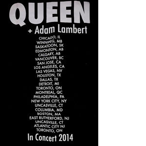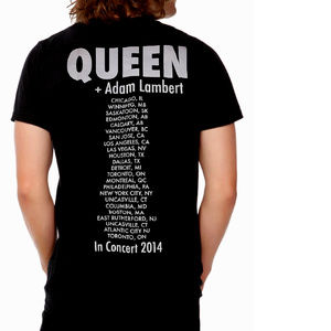 Heavy cotton T-shirt with Crest Logo with Gold Crown on the front and Queen Logo with a list of the cities for Tour 2014 on the back. 100% heavy cotton.