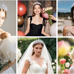 Color: Silver Product Dimensions: 6.69 X 5.91 X 2.17 Inches; 2.89 Ounces Department: Womens Item Width: 15 Centimeters Material: Alloy Metal Metal Type: Alloy Metal Clasp Type: Tie Clasp Gem Type: Crystal Material:Alloy & Rhinestone Color: Silver Dimensions: Dia 13-15 cm Height 6 cm The crown has a diameter of 5.7 inches, a modest size perfect for adult women and girls over 8 years old. This tiara features an adjustable steel ring design, allowing for subtle adjustments to fitvarious head shapes and sizes Perfect item for your Wedding, Birthday, Quinceanera, Bridal Showers, Halloween, Thanksgiving, Theater, Cos-play, Church, Prom, Anniversary, Music Festival, Costume Party or any other special occasions, etc WEARING POINTS : The Tiaras crowns has a small hole, which should be fixed on the hair with a clip. . You could also use ribbon to secure the tiaras. Thread the ribbon through the two holes and tie around your heads, which will make sure that tiara stayed at your head all day along tiaras with Comb