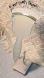 Adorable silver hand mirror with etched 'Queen' design. Padded felt back in soft gray. Matte silver metal stand with weighted bottom and ball feet. Mirror is 11" long and 6" across top. 15"T on stand. Perfect condition!