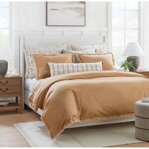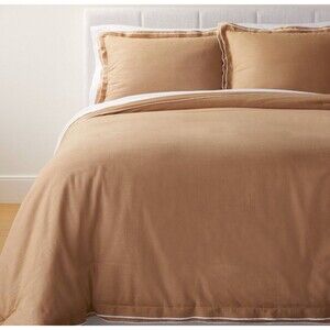 Brand new. Full/Queen size duvet cover and sham set in camel and off-white from Threshold designed with Studio McGee. Features soft cotton fabric, merrow stitch detail, and double flange edges for a clean, tailored finish.