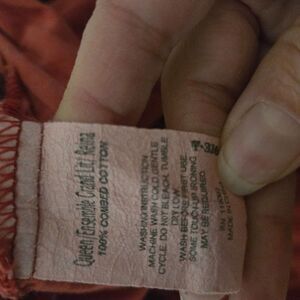 Stylish reddish orange colorway set by Queen Ensemble bedding queen set.