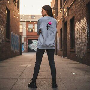 Queen Of Everything Gray Graphic Sweatshirt Unisex M Streetwear Pullover