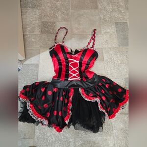 Queen Of Hearts Costume Small Red and Black Polka Dot Dress Mini Corset